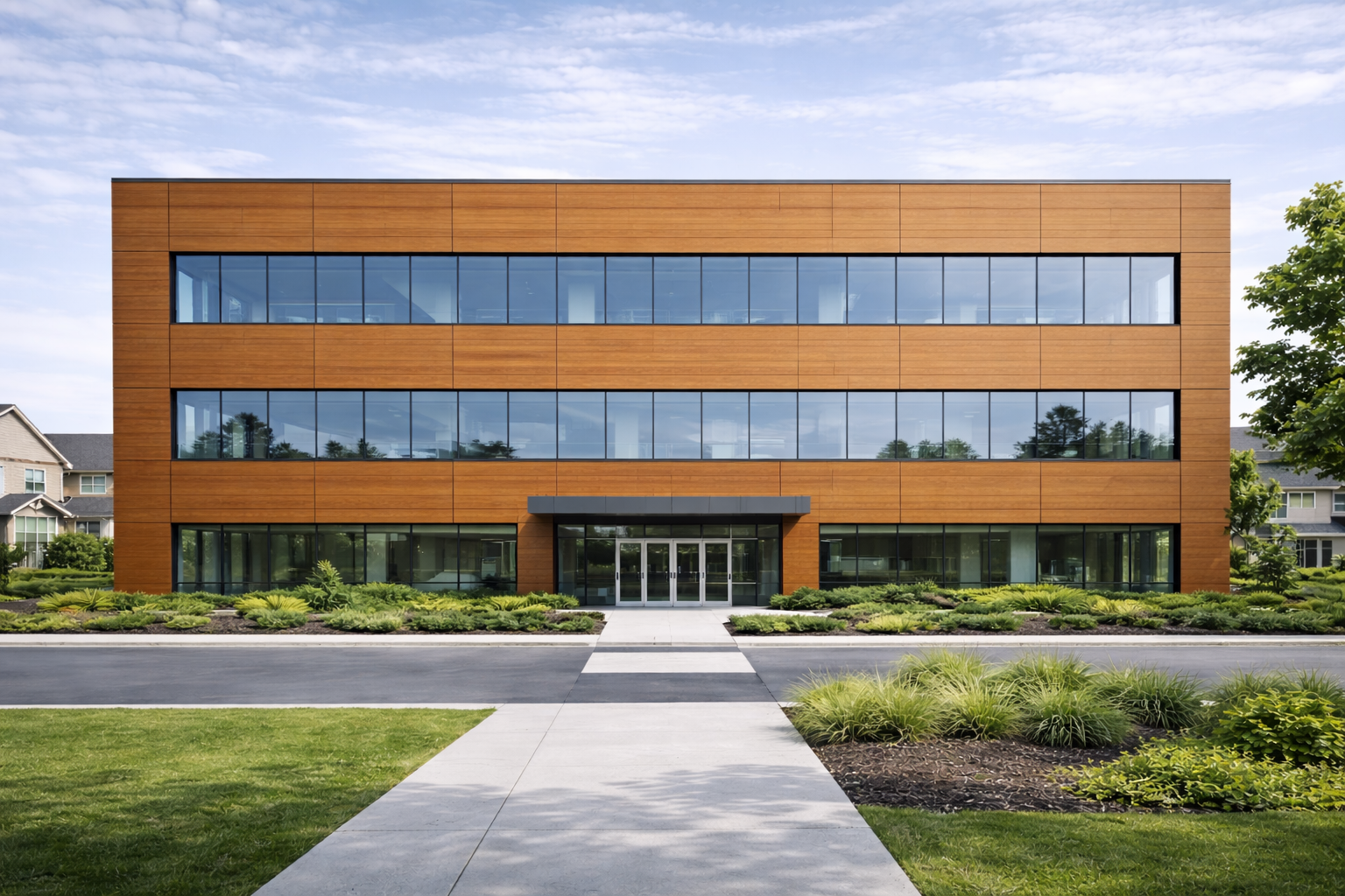 חיפוי מבנה משרדים בשילוב אלוקובונד HPL